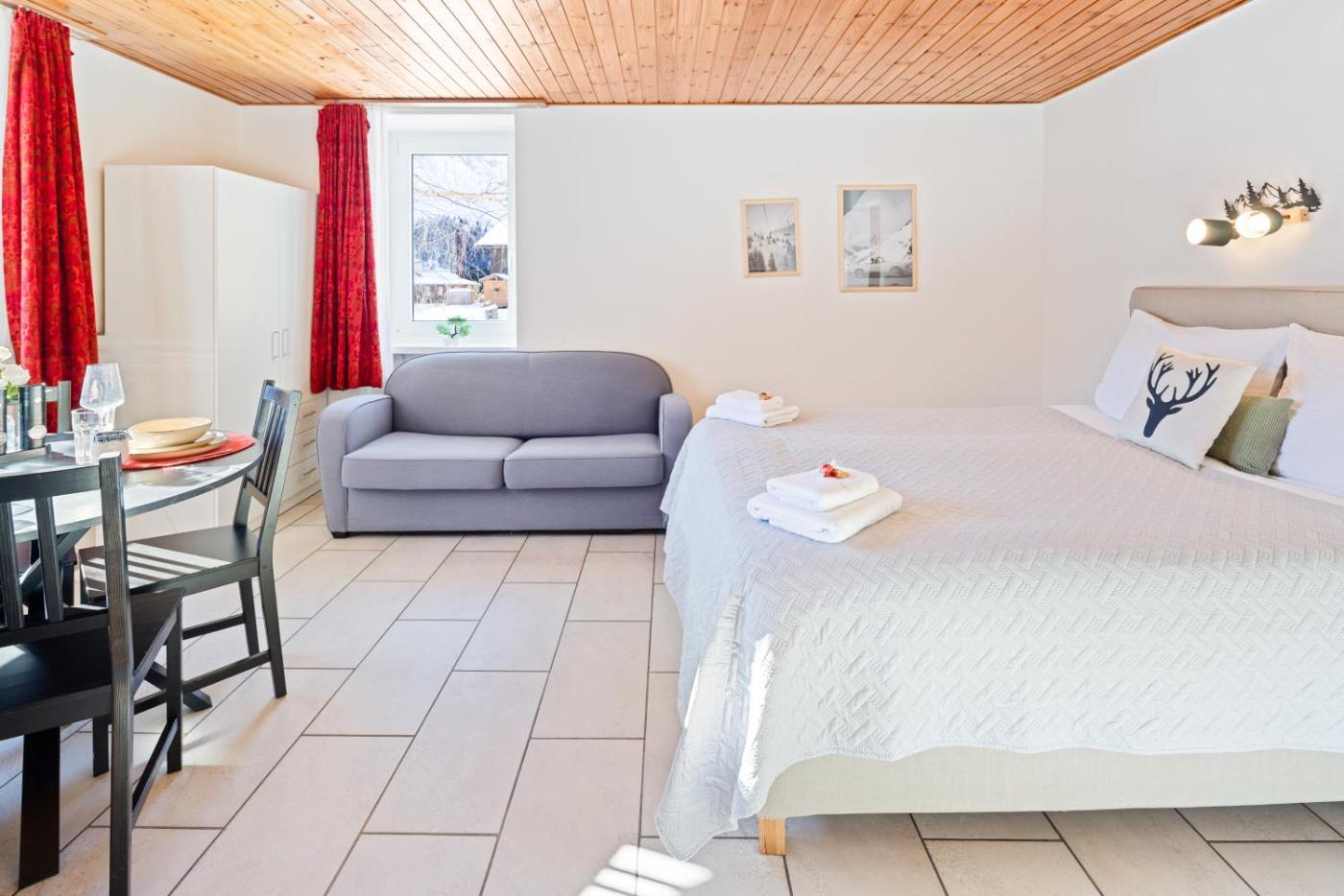One-Bedroom Apartment. Featuring a private entrance, this apartment also is comprised of 1 bedroom, a seating area and 1 bathroom with a shower and a hairdryer. The well-equipped kitchen features a stovetop, a refrigerator, kitchenware and an oven. The apartment offers soundproof walls, a tea and coffee maker, a dining area, a flat-screen TV with streaming services, as well as mountain views. The unit offers 1 bed.