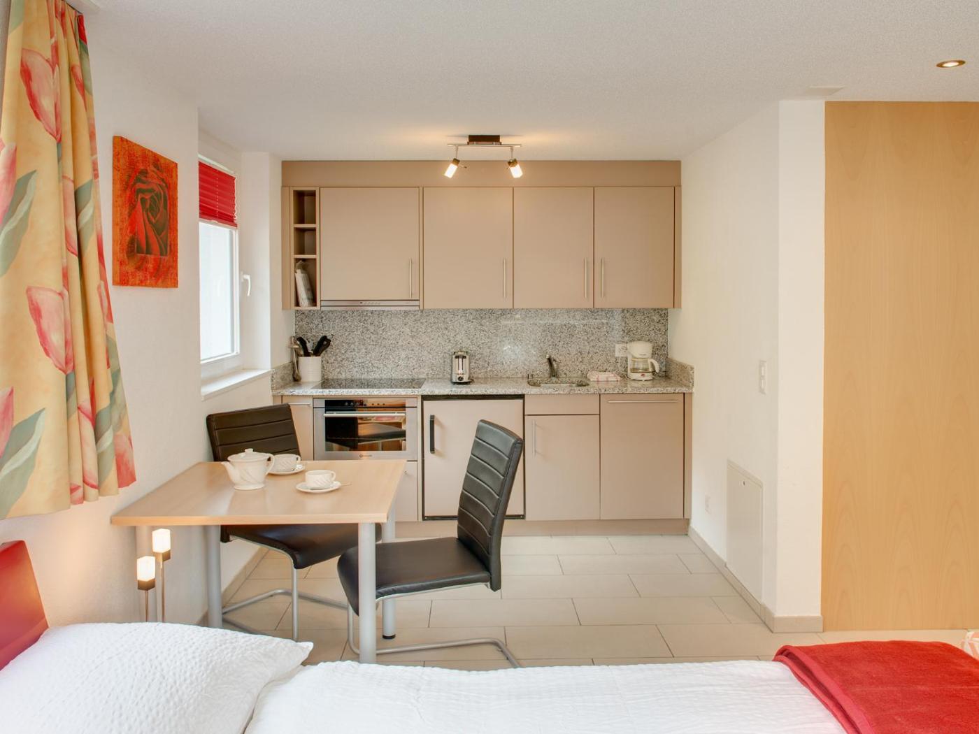 Studio with Balcony. This studio comes with a kitchenette, cable TV and a balcony. Please note that extra beds are not available in this room type.