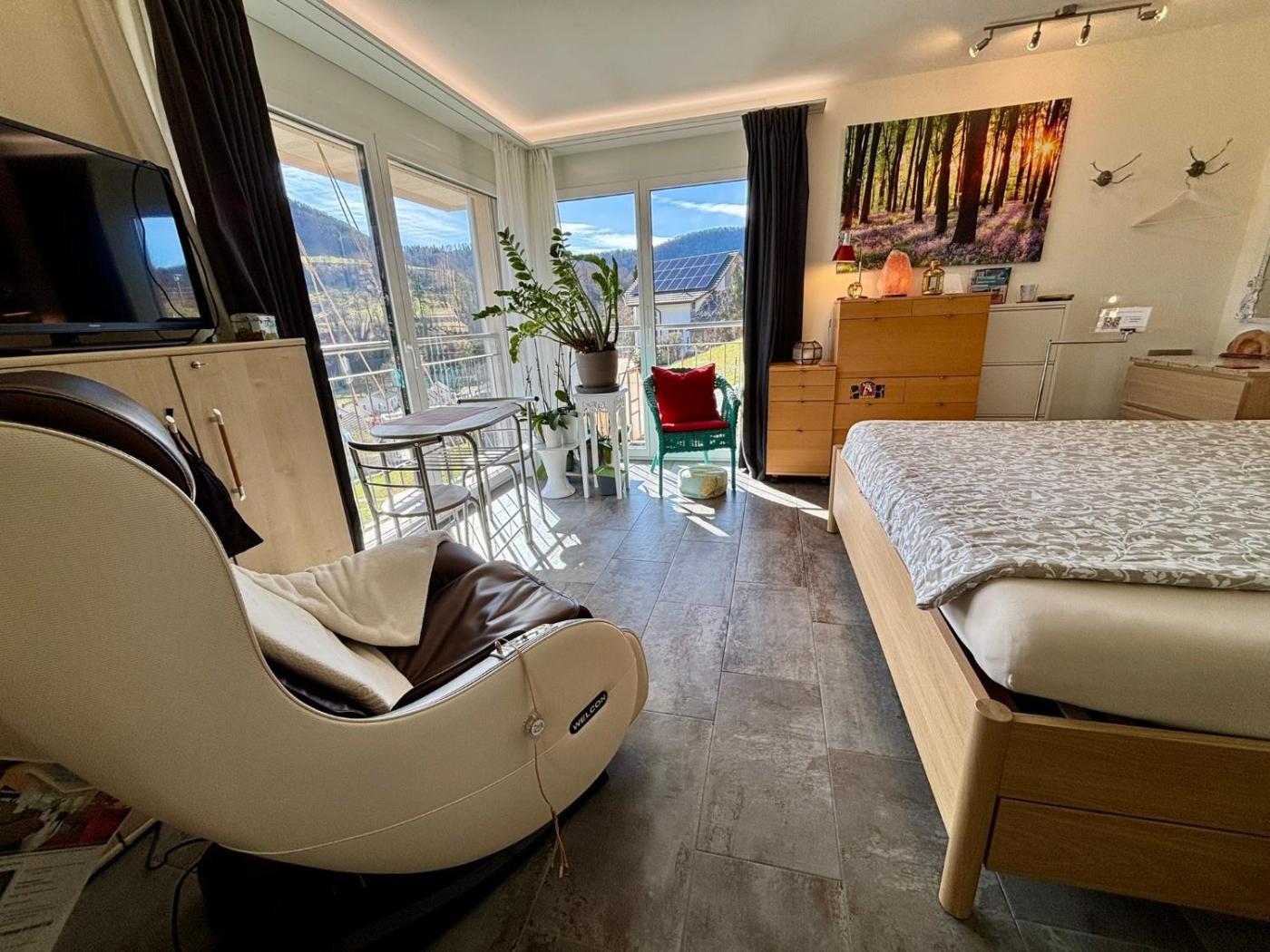 Located in Zullwil, 23 km from Schaulager, Chez Svanette B&B Villa Sonnglück provides accommodation with water sports facilities, free private parking, pool with a view and an open-air bath. There is a private entrance at the bed and breakfast for the convenience of those who stay. Guests can make use of the outdoor fireplace or the picnic area, or enjoy views of the mountain and pool.